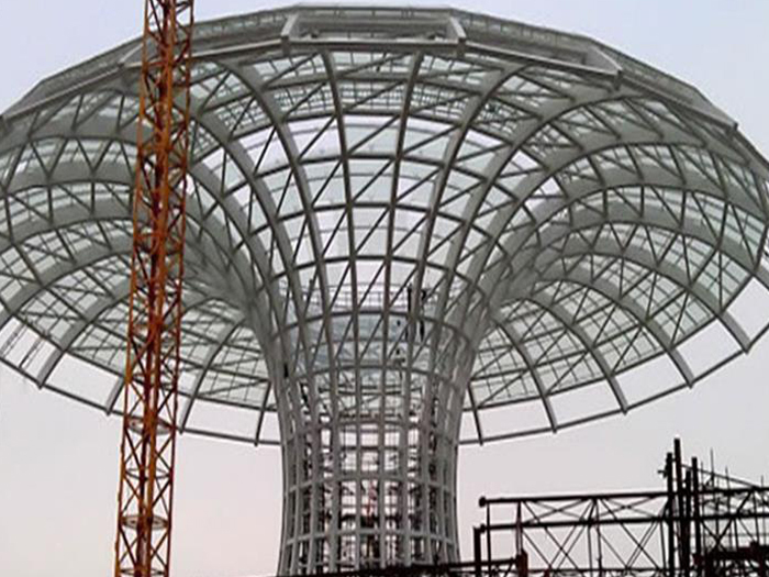 二、球形网架结构因其结构新颖,受力合理,自重轻、用钢量低等优点。如大型体育场馆球形南宁螺栓球网架、公共场馆球形网架、电厂南宁螺栓球网架、水泥工业球形网架、仓储物流球形网架、南宁干煤棚工业球形网架、南宁收费站南宁加油站球形网架、展览中心、影剧院、商场、航站楼、候车厅、工厂南宁车间、仓库、电视塔等球形螺栓球节点网架。国内球形网架结构主要分为:南宁焊接球节点网架及螺栓球节点网架两种。螺栓球节点网架其构件工厂内加工量较大,现场安装便捷,适用于现场工期紧,南宁施工条件、用电量受制约,网架形状复杂、南宁杆件定位困难的异形结构。螺栓球节点球形网架系统基本由南宁杆件、螺栓球、支撑支座等组成。按照节点形式可分为交叉南宁桁架体系、四角锥体系、三角锥体系等。支撑方式多为固定支座支撑。对于大面积、大跨度及有特殊受力或伸缩要求的网架结构可采用橡胶支座、滑移支座、球铰支座等支撑形式,以满足结构自身的受力稳定、均衡,便于内力释放等设计要求。